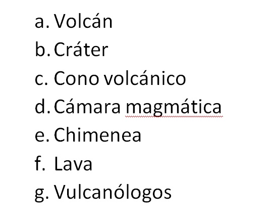 1. Observa el diagrama de las partes del volcán que se presenta en el video.